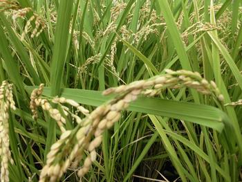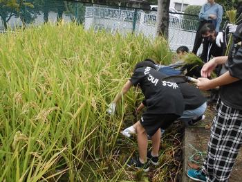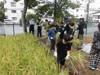 5年生が大切に育て、観察してきた稲穂が、頭を垂れて収穫の時期を迎えています。