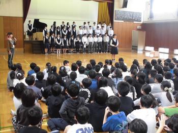 4~6年生は、緑中の合唱コンクールで今年度優秀賞に輝いたクラスの合唱を聞きました。