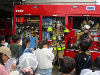 頭の中が「?」でいっぱいの子どもたちは、楽しみにしていた青葉消防署の見学に出かけることになりました。