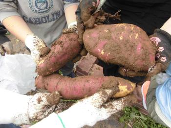 土の中からは大きなお芋がごろごろでてきて、あちらこちらで歓声があがっていました。