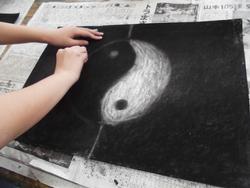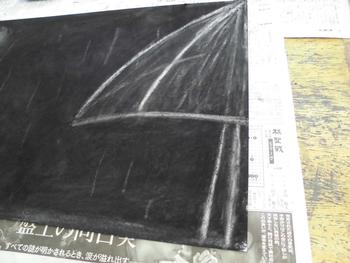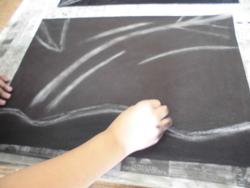 黒のコンテで、一心不乱に白画用紙を黒に塗りつぶしていました。