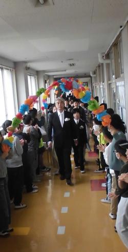 その後、6年生は廊下の花道を通り、在校生に温かく見送られながらお別れをしました。