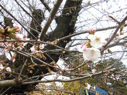校庭では、ジャングルジム横の桜が数輪花を咲かせ、校長先生より「谷本小学校の桜の開花宣言」がありました。