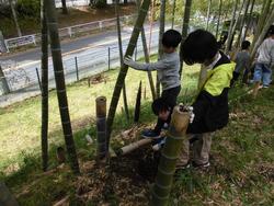 今日は、今年度初めて、6年生が総出で1回目のタケノコ掘りをしました。