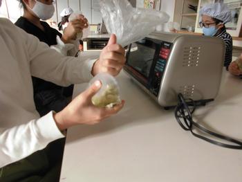 まずはふかしたお芋を袋に入れて、牛乳と砂糖を入れてモミモミモミ。