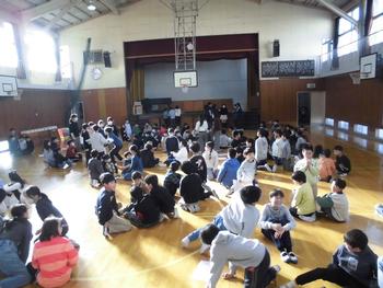 今朝は、3・4年生のペア学年集会。手拍子の数だけ集まろうというゲームです。数が大きくなるにつれて集まるのもたいへんです。