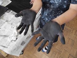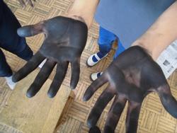 5年生の図工をのぞきにいくと… みんな手が真っ黒でびっくり!