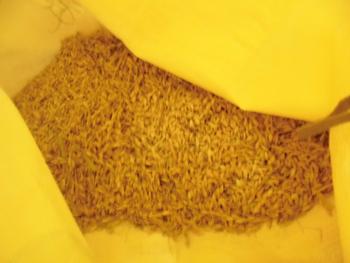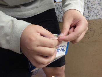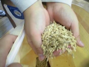 脱稿は、牛乳パックの中に稲穂を入れて引っ張り出す方法にしました。