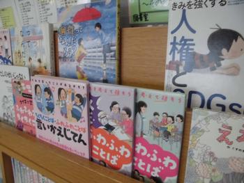 やもりん隊の「たけのこ文庫」のみなさんが、季節ごとに飾ってくださっている図書館のショーケース。