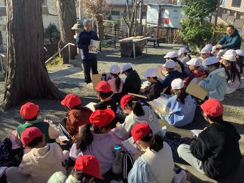 地域のお店や、神社、公園などに行き、実際に働いている人のお話を聞いたり、質問したりしました。