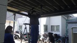 今日は学校の用務員がホースをつなぎ、ミストの噴霧が出るエリアを作りました。打ち水の効果で、涼しさを感じることができるようになりました。