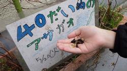 今日は3年生の子どもと一緒に、そのタネを収穫しました。写真が「41代目のアサガオのタネ」です。