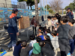 11日(木)に洋光台消防出張所の消防士の方々が来校して、お出かけ防災教室を行いました。