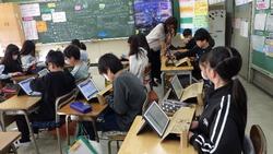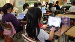 教室では、学年に応じてタブレット端末を使った文字入力の学習を進めています。
