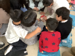 20日に、今年度最後のたてわり活動を行いました。今回は、「お正月遊びを通して、他学年との仲を深めよう」のめあてをもとに、すごろくや、福笑い、百人一首など、それぞれの班で計画されたお正月遊びを楽しみました。他学年の友達に声をかけてもらいながら楽しく遊びました。