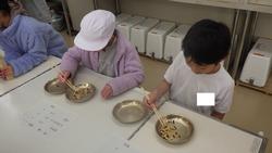 楽しみながら取り組む中で、正しい箸の使い方や手先の使い方を意識するよい機会にもなったようです。