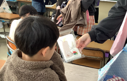 5日(木)に、たてわり班の6年生と最後の交流会をしました。教室や校庭で一緒に遊んだり、給食を食べたりしました。最後に6年生から一人ひとりにサプライズのプレゼントをもらいました。6年生が作った雑巾・プラバン・和紙で作ったしおりを見て「こんなのが作れて、すごいね。」「もったいなくて、使えない。」と驚いていました。いつも優しくしてくれる大好きな6年生と楽しい時間を過ごしました。