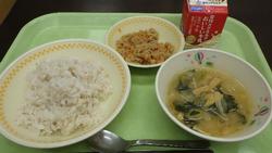 今日の献立は、麦ごはん、牛乳、ツナそぼろ、みそ汁です。
