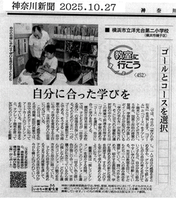 本校の「子どもを主語にした授業づくり」の取り組みが、10月27日付の神奈川新聞にて紹介されました。