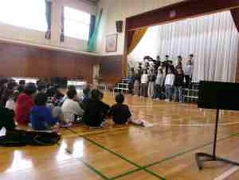 今朝、体育館で6年生に向けた小学校生活最後の読み聞かせが行われました。