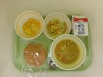 給食の配膳が終わる頃、職員室を出て給食室前を通りかかると、6年生が何やら集まっていました。