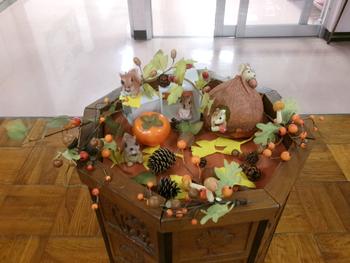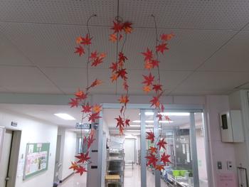 職員室前の飾りも、赤や黄に色づいた葉や秋の実りをモチーフにしたものへと変わり、校内にも秋の風情が漂っています。