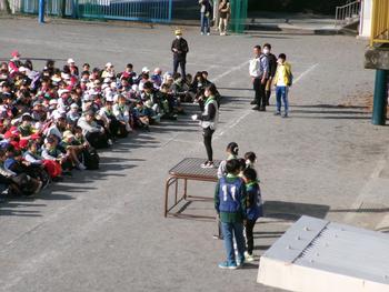 秋晴れの空の下、今日は朝から全校朝会が行われました。