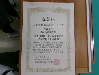 本日、大会主催者の方が来校し、図書室で表彰式が行われました。