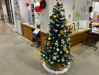 鮮やかな装飾のおかげで、図書室は一気にクリスマスムードに!
