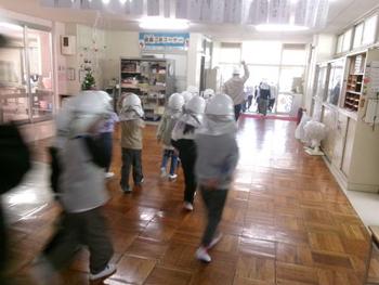 事前に各クラスで「おかしものの確認」「訓練のねらい」「避難時に気を付けること」などをしっかり確認したうえで、訓練に臨みました。