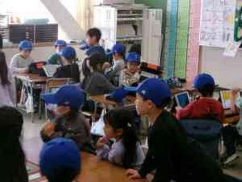 朝の時間、突然流れた訓練放送に、子どもたちは驚きながらも状況をよく判断し、落ち着いて行動しようとする姿が見られました。
