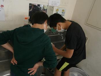 「校内をきれいにしよう」に取り組んでいる6年生。