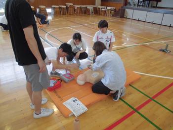 心肺蘇生法やAEDの使い方を実技を通して学びました。