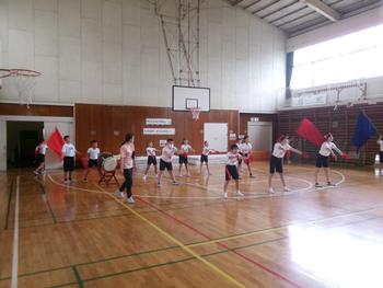 中休みのひととき、職員室に響く元気な声に誘われて、体育館を覗いてみました。
