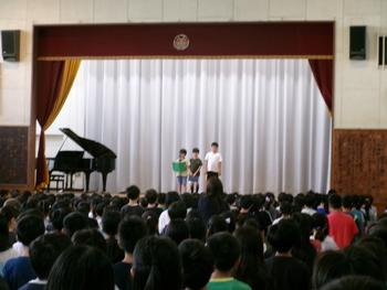 代表児童の発表では、国語の音読や音楽のリコーダー、委員会活動など、前期に頑張ったことやできるようになったこと、そして自分自身の成長について、堂々とした姿で語ってくれました。