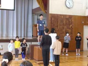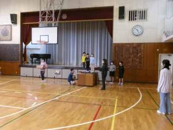 体育館では、開閉会式の練習が行われ、代表児童が言葉や動きを丁寧に確認していました。