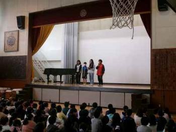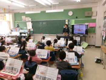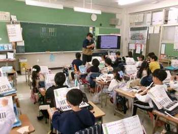 1年生の教室から、けんばんハーモニカの音が響いてきました。