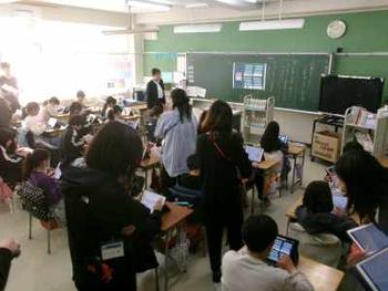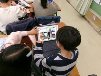 教室に戻ると、撮った写真を友達と見合いながら、調べたことをまとめる姿がありました。