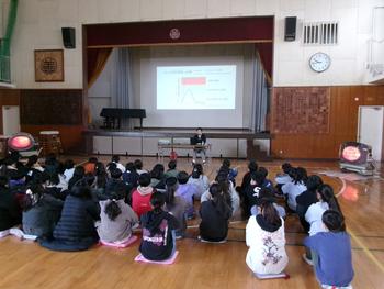 本日、本校では学校医でもある薬剤師の先生をお招きし、6年生を対象とした「薬物乱用防止教室」を体育館にて実施しました。