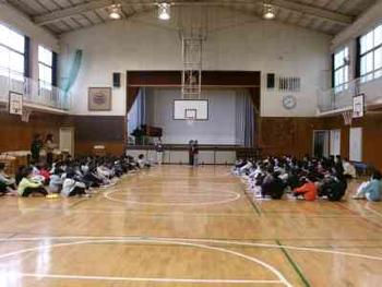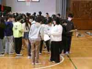 6校時、体育館にてスマイル班の「リーダー引き継ぎ会」が行われました。