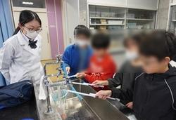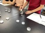 参加した小学生は、ストローをティッシュペーパーでこすって帯電させ、静電気の力でアルミ箔を動かしたり、蛇口から流れ出る水の流れを曲げたりする実験を行い、サイエンス委員から、静電気の起こるしくみについての説明を聞きました。