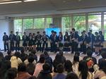 ホールで、約300名のDT校生徒を前に、日本文化に関するプレゼンテーションを実施。英語による発表とソーラン節の披露を堂々と行い、終了後には大きな拍手を受けました。