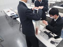 探究活動ではDT生徒と本校生徒で共同研究チームを作り、「A3サイズの紙を使ったタワー作り」についてディスカッションと実習を行いました。1kgの重りに耐えるタワーをできる限り高く、しかも少ない枚数の紙で作るという課題は難問でしたが、高校と中学校の垣根を越え、そしてカナダと日本の国境も越えて、みんな一丸となってがんばりました。