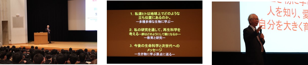 今年度最後のサタデーサイエンスは、本校常任スーパーアドバイザーの浅島誠先生によるご講演でした。浅島先生は生物の根源に関わる分野が専門であり、この分野は「生物とは何か」について、突き詰めて考えていくことが求められます。
