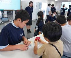 校舎屋上で天体ドームの見学や天体望遠鏡の操作を体験したり、プラネタリウムによる星空案内やコンピュータを使った天体の説明を受けたり、星座かるた等を体験したりしました。参加した小学生は、様々な体験や天文部の生徒の説明を通して、星空の魅力や天体の不思議、宇宙の大きさについて、知識や興味を深めているようでした。