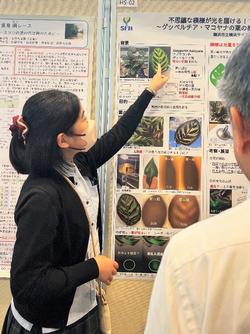 2年次小島大洋さんは「クロオオアリの食性と塩分の関係性について」、2年次福井悠太さんと1年次柿本侑里さんはチーム研究を代表して「箱根、丹沢の希少植物の生態調査と保全活動に向けた取り組み」というタイトルでポスター発表を行いました。小島さんは2年次の課題研究授業であるサイエンスリテラシーII(SLII)の授業のみならず、博物館の学芸員の方にアドバイスをもらいながら、中学生のころからアリについて研究してきました。チーム研究は、SLIIとサイエンスラボで研究を継続して行っており、附属中学3年生から高校2年次の16名が調査・研究を進めてきました。