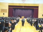 修了式は校長先生による年度の締めくくりとなる講話、生活保健指導部主任による講話、校歌斉唱と続きました。校歌斉唱では大きな歌声が響きわたり、やはり全校で一堂に会することの良さ、全校生徒の一体感を感じるものとなりました。