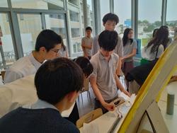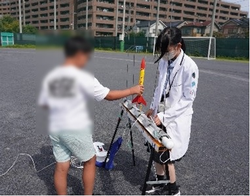 探究活動「ペーパーロケット作成」には、本校の生徒とDTの生徒が協力しながら取り組みました。