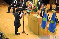今年度は、姉妹校として交流しているカナダのDavid Thompson Secondary Schoolのみなさんがちょうど来校してくださっていたこともあり、全体会では歓迎式典も行いました。また、全体会では防災プログラム参加者による報告も行われました。
