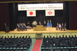 式は悠々とした足取りと堂々とした姿勢での卒業生の入場に会場は大きな拍手に包まれ、温かさと厳かさの調和のとれた雰囲気ではじまりました。地域の方々も含めた多くの来賓の方々が列席し、在校生として高校2年次生が見守る中で行われました。在校生の言葉では、代表の足立真悟さんが先輩たちとの別れを惜しみながらもこれからの学校を背負っていく決意を述べ、卒業生の言葉では代表の伊東美晴さんがこの日を迎えるにあたっての様々な方への感謝の言葉と、これからの歩みに対する力強い姿勢を示してくれました。 最後には、年次の仲間と歌う最後の校歌を、卒業生が素晴らしい歌声を響かせて式を締めくくりました。これからの卒業生諸君のさらなる活躍を期待しています。ご卒業おめでとうございます。